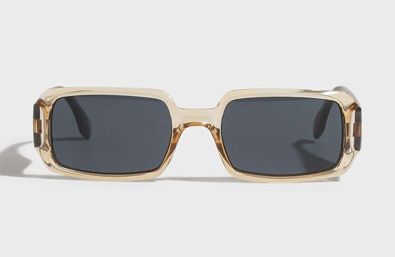 A pair of pilot sunglasses with a metal frame and contrasting rounded temples in acetate. The polished metal hardware is engraved with the Burberry logo and hallmarks. Scratch-resistant silver lenses with mirror effect.